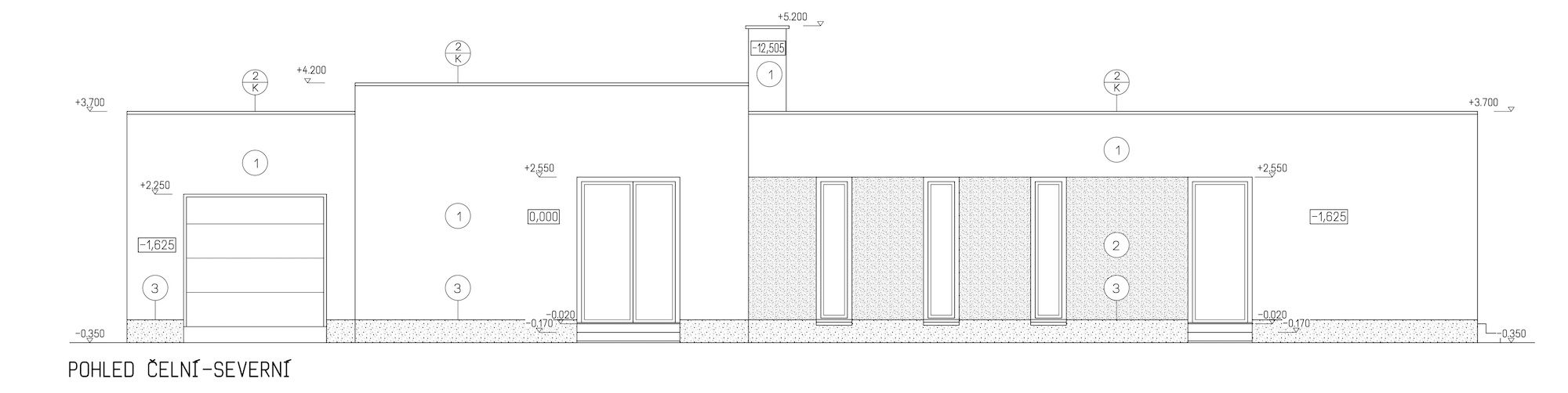 Zelená střecha, terénní úpravy vč. zasazení rostlin ze severní strany (odclonění od sousedů)