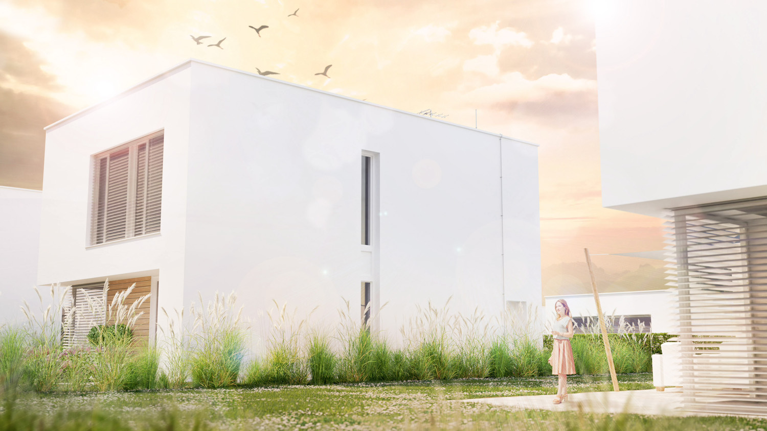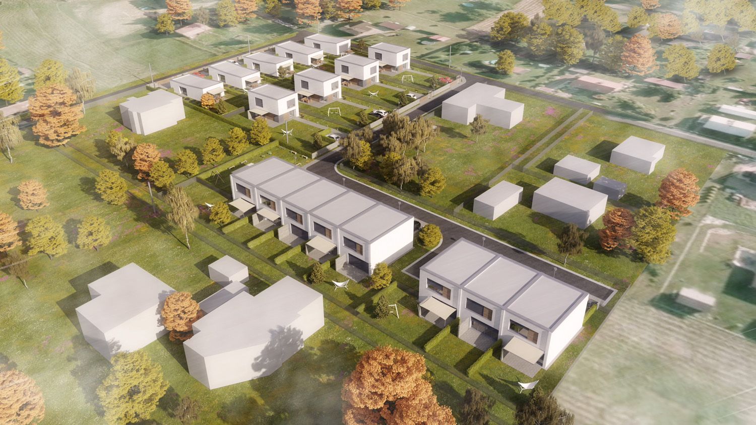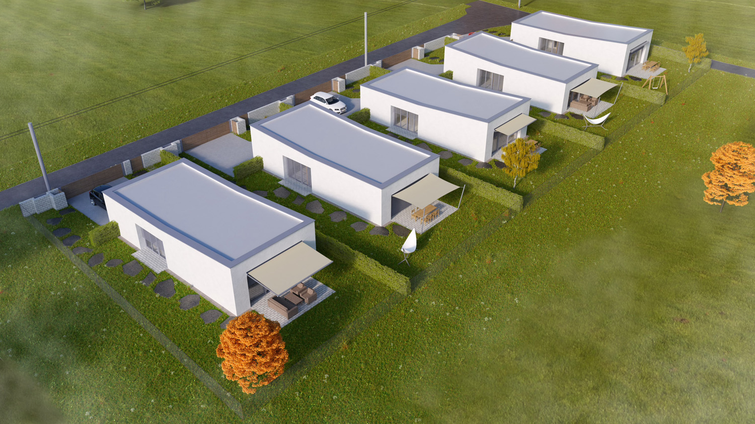 Zelená střecha, terénní úpravy vč. zasazení rostlin ze severní strany (odclonění od sousedů)