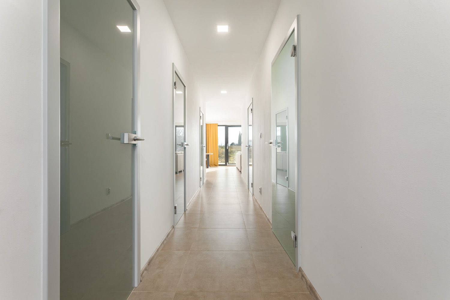 Dlažby, podlahy, interiérové dveře, hliníková okna